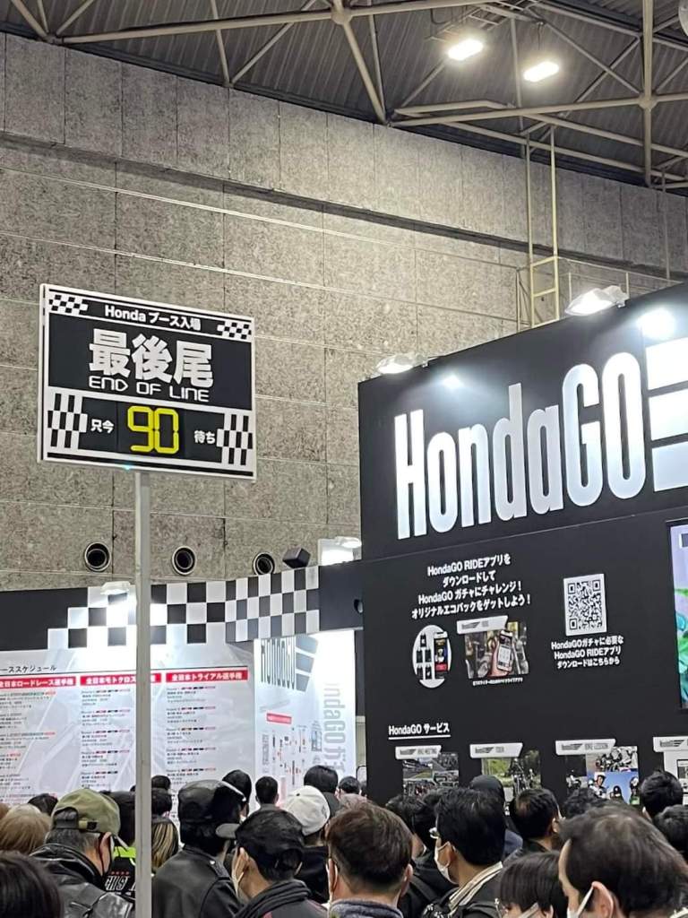 HONDAブースはメリーゴーランドの様にまわる試乗車が大人気で90分待ち‼️